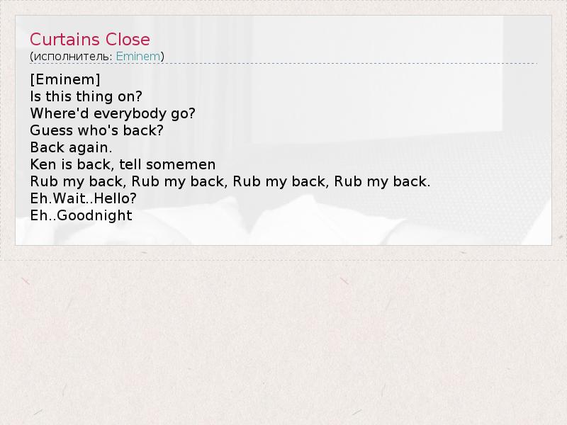 А как ты думаешь, о чем песня "Curtains Close" ?