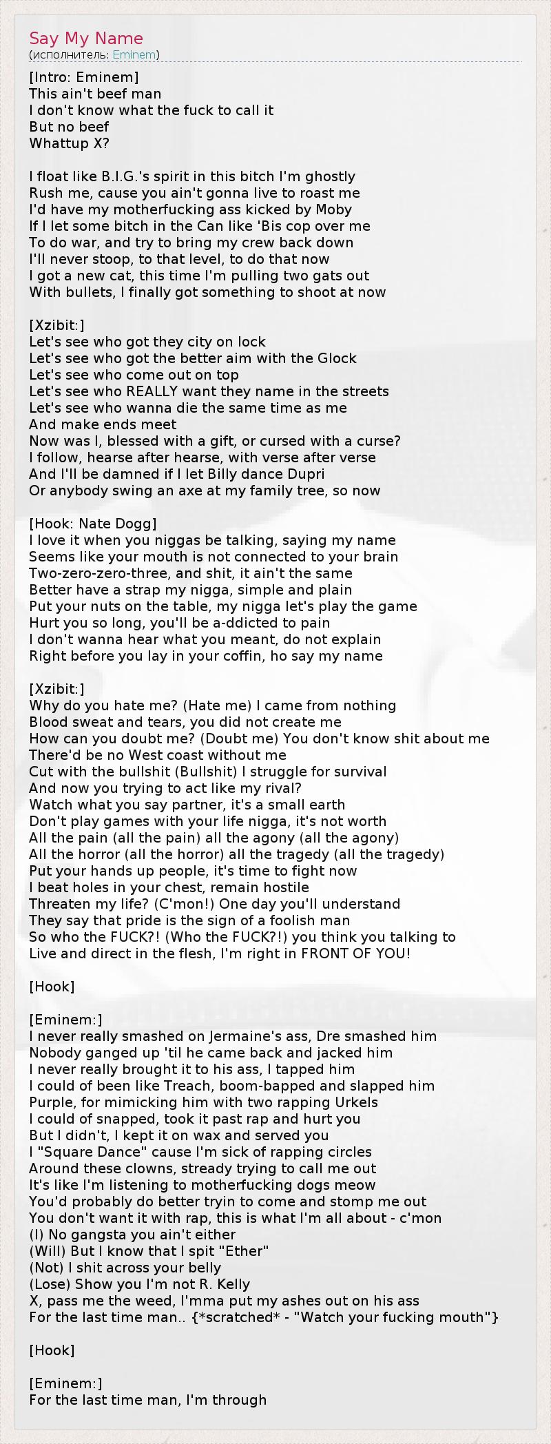 Right before you lay in your coffin, ho say my name