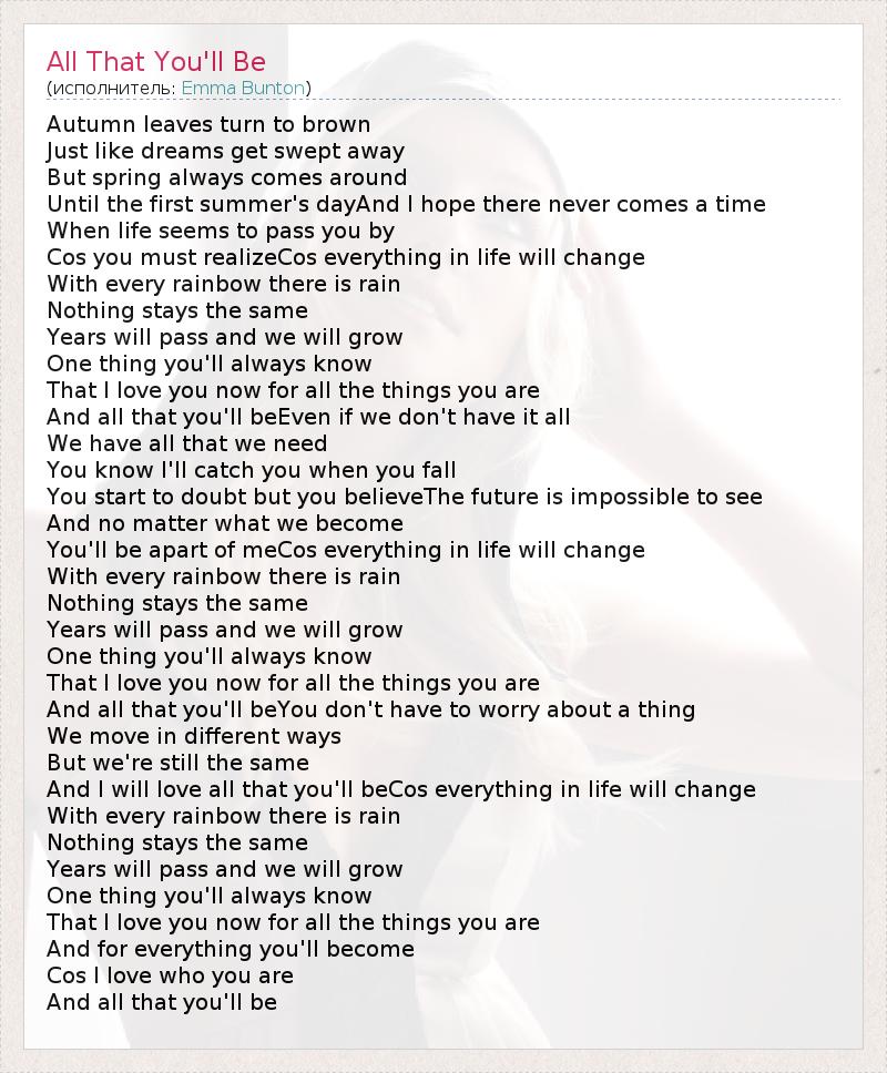 А как ты думаешь, о чем песня "All That You'll Be" ?