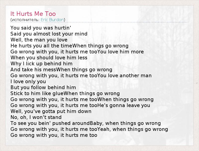 А как ты думаешь, о чем песня "It Hurts Me Too" ?