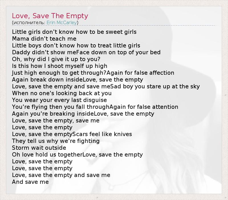 А как ты думаешь, о чем песня "Love, Save The Empty" ?