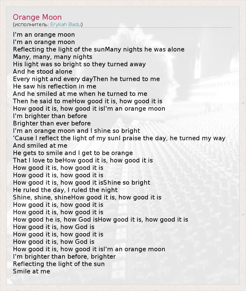 А как ты думаешь, о чем песня "Orange Moon" ?