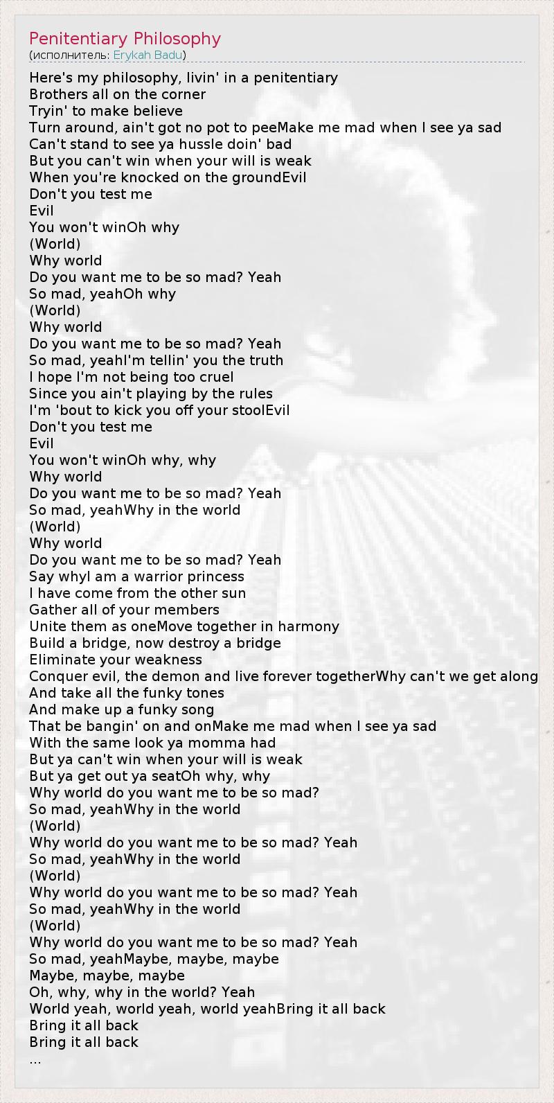 А как ты думаешь, о чем песня "Penitentiary Philosophy" ?