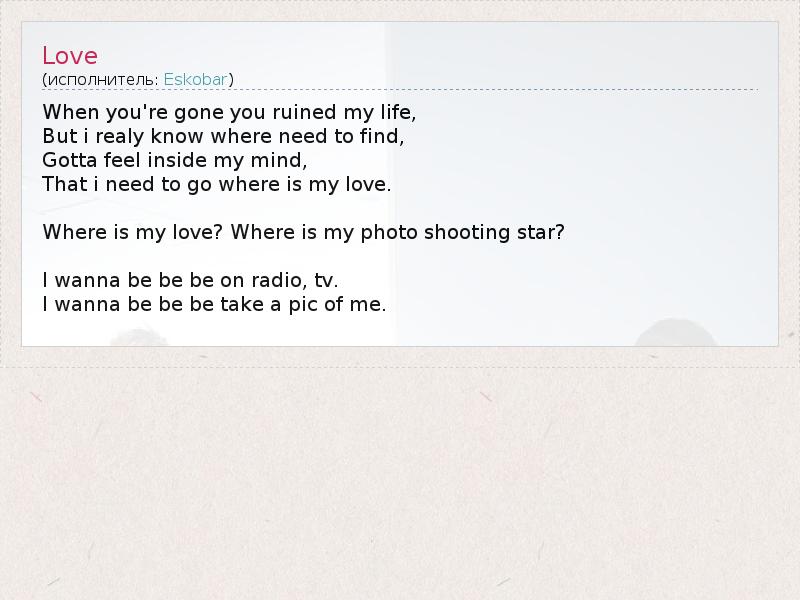 True Love (полная версия текста)  Я ГАТОВИЛА ЛИБИДУ ПОЛНАЯ ВЕРСИЯ (ЕСТЬ ТЕКСТ)  Спит убитая лисичка  На каене  Сказка о Прыгуне и Скользящем (полностью)  La fetta illa Ali(as)  L'amore ci cambia la vita  Tombe La Neige (Падает снег)  Cocaine (есть перевод текста)❤  SwaLa La La минус оригинал,толық  Ring frei(текст хороший)