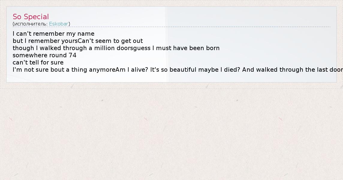Это интересно:Eskobar - шведская поп-рок группа, образованная в 1996 году в городке Акерсберга. Состав: вокалист Daniel Bellqvist, гитарист Frederik Zäll и барабанщик Robert Birming.