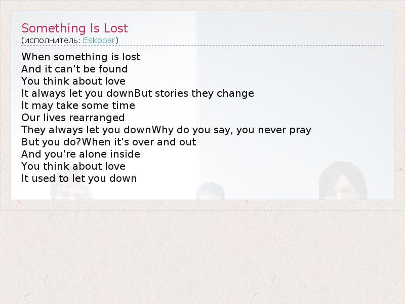 А как ты думаешь, о чем песня "Something Is Lost" ?