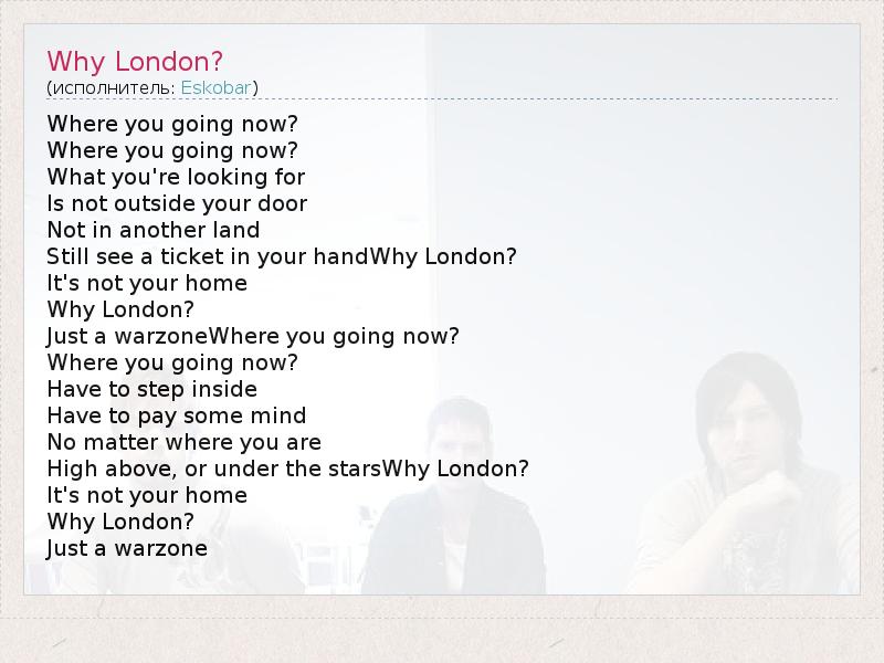 Это интересно:Eskobar - шведская поп-рок группа, образованная в 1996 году в городке Акерсберга. Состав: вокалист Daniel Bellqvist, гитарист Frederik Zäll и барабанщик Robert Birming.