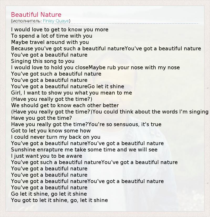 А как ты думаешь, о чем песня "Beautiful Nature" ?