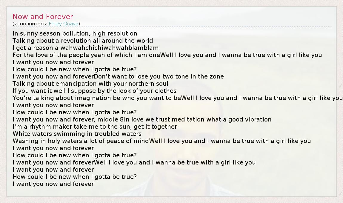 I want you now and foreverWell I love you and I wanna be true with a girl like you