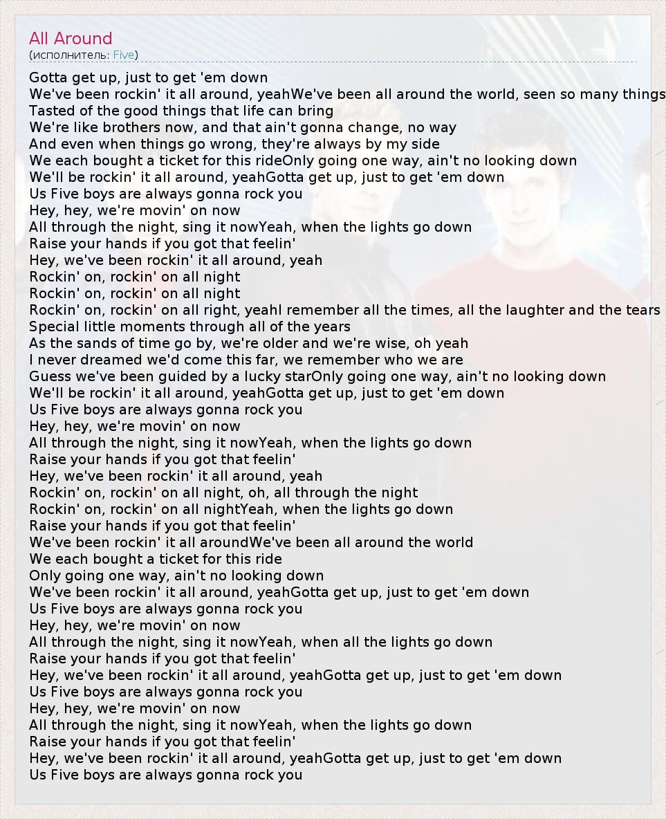 We've been rockin' it all around, yeahGotta get up, just to get 'em down