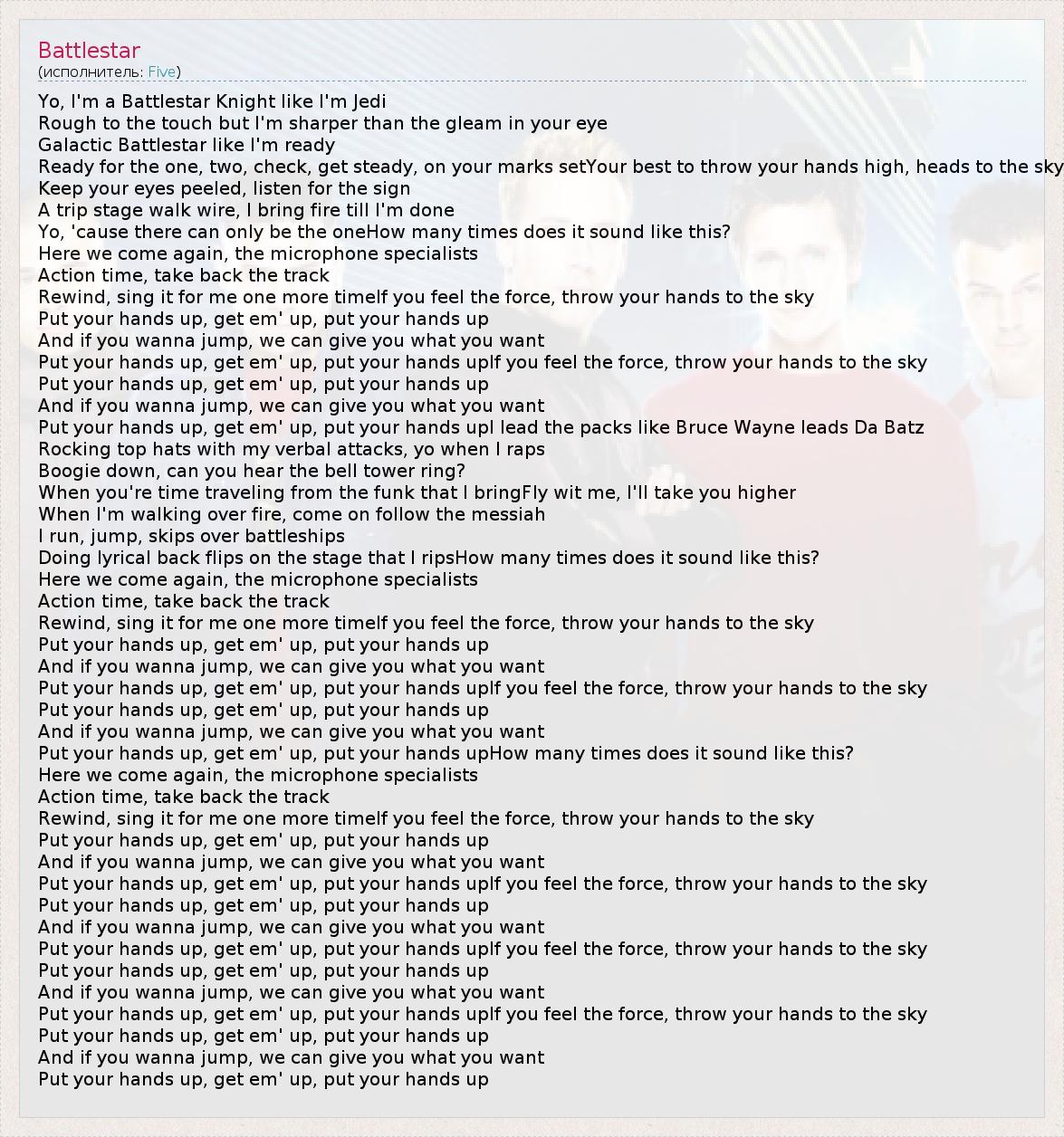 Put your hands up, get em' up, put your hands upHow many times does it sound like this?