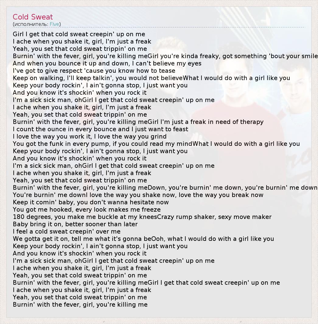 А как ты думаешь, о чем песня "Cold Sweat" ?