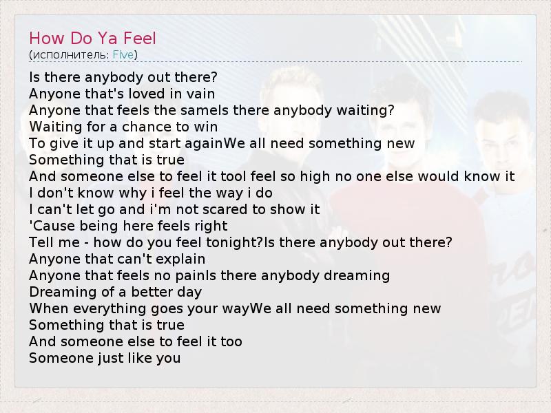 А как ты думаешь, о чем песня "How Do Ya Feel" ?