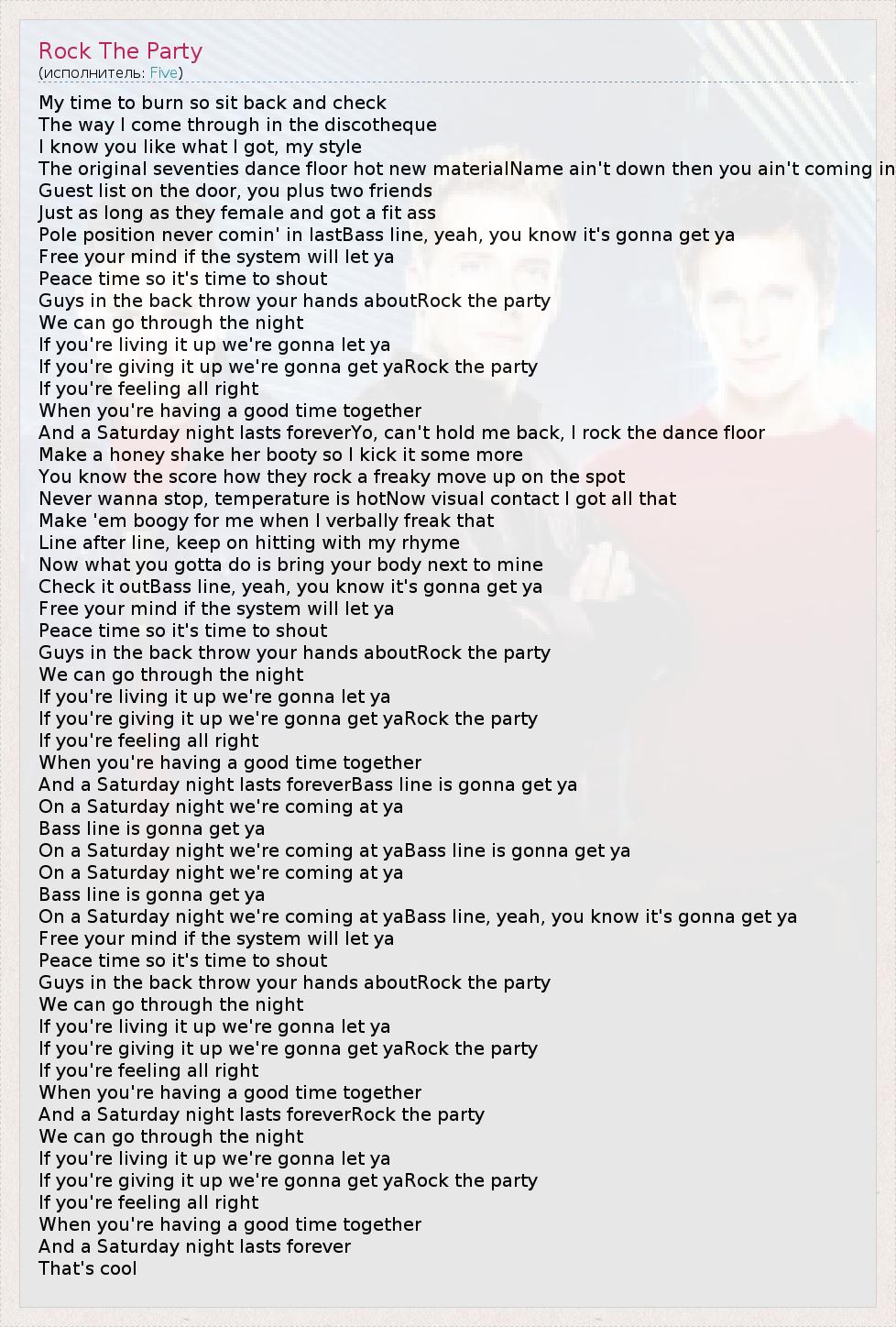 А как ты думаешь, о чем песня "Rock The Party" ?