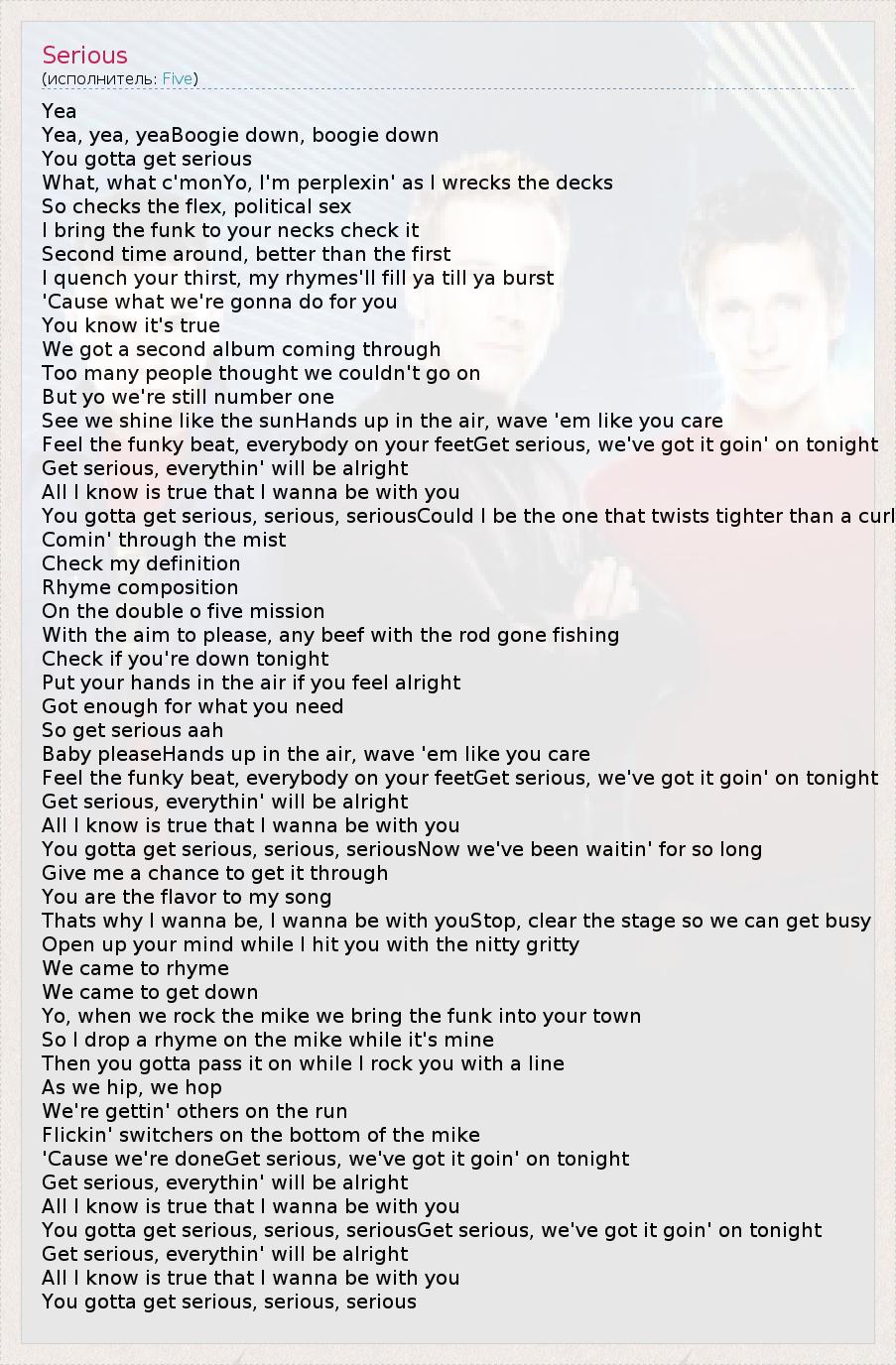 You gotta get serious, serious, seriousGet serious, we've got it goin' on tonight