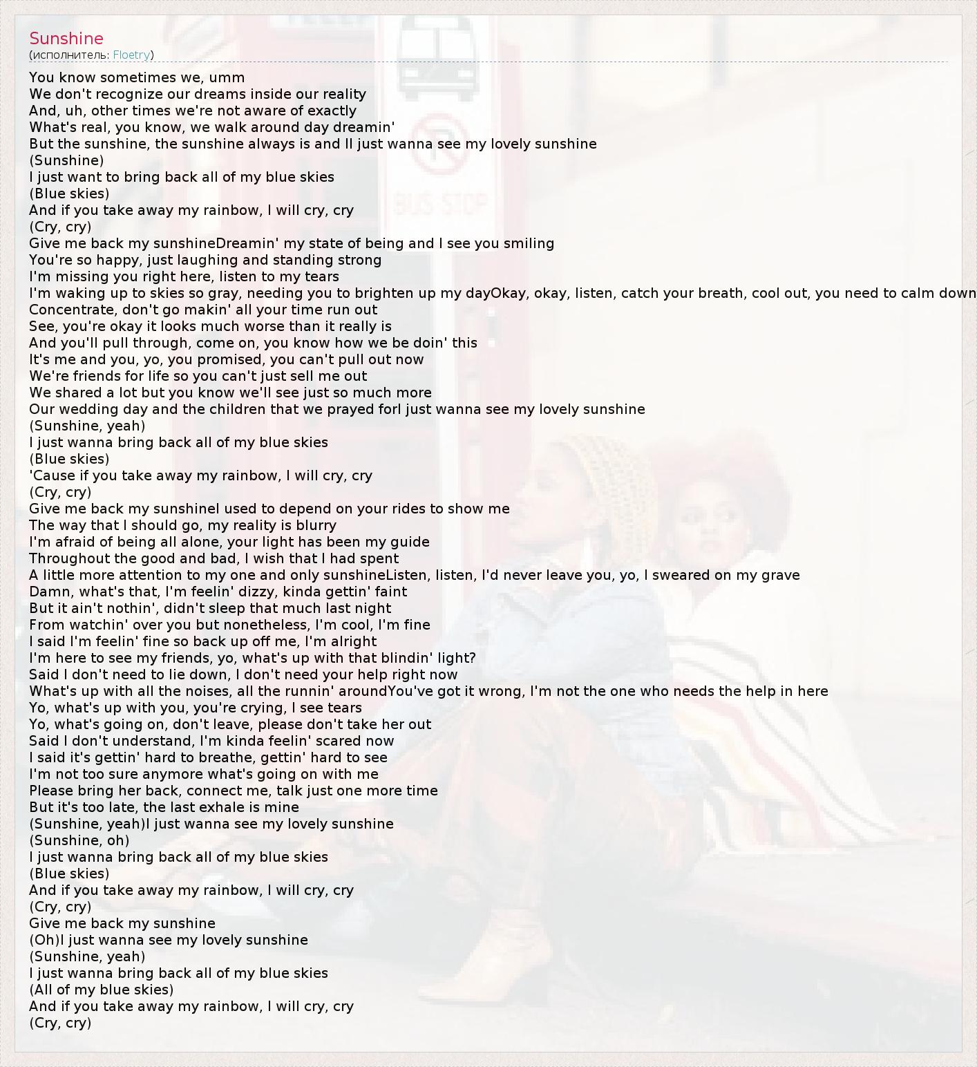But the sunshine, the sunshine always is and II just wanna see my lovely sunshine