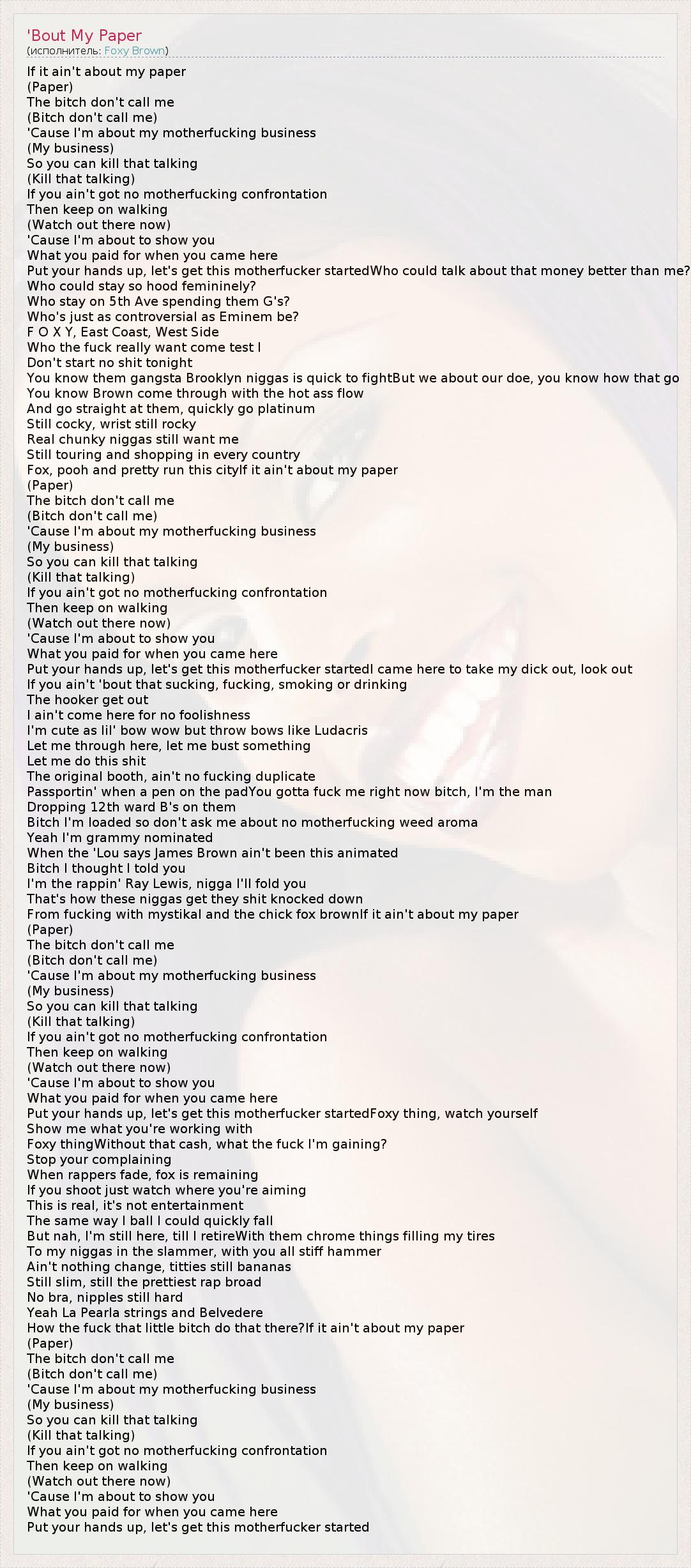 А как ты думаешь, о чем песня "'Bout My Paper" ?