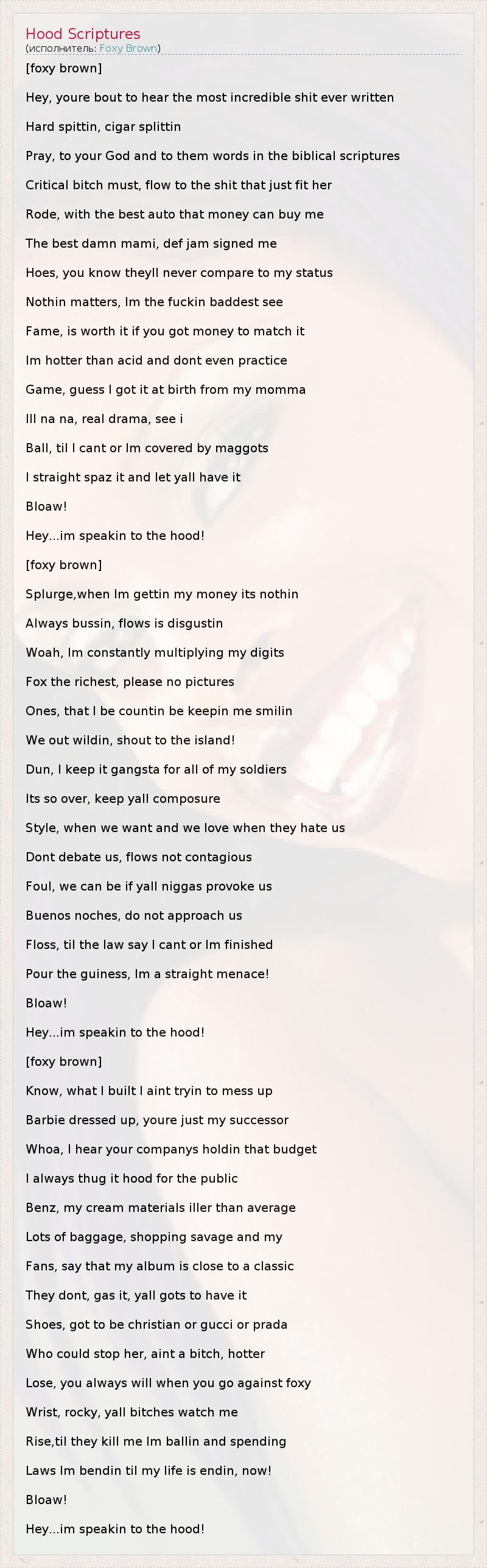 А как ты думаешь, о чем песня "Hood Scriptures" ?