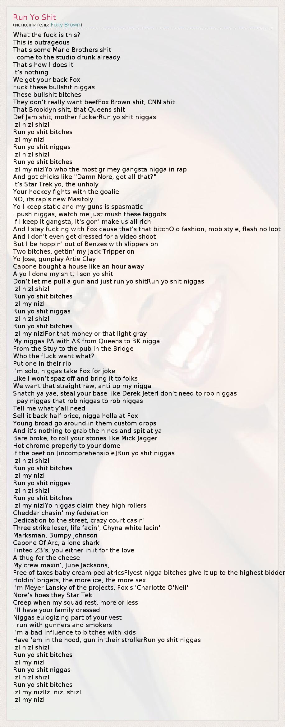 А как ты думаешь, о чем песня "Run Yo Shit" ?