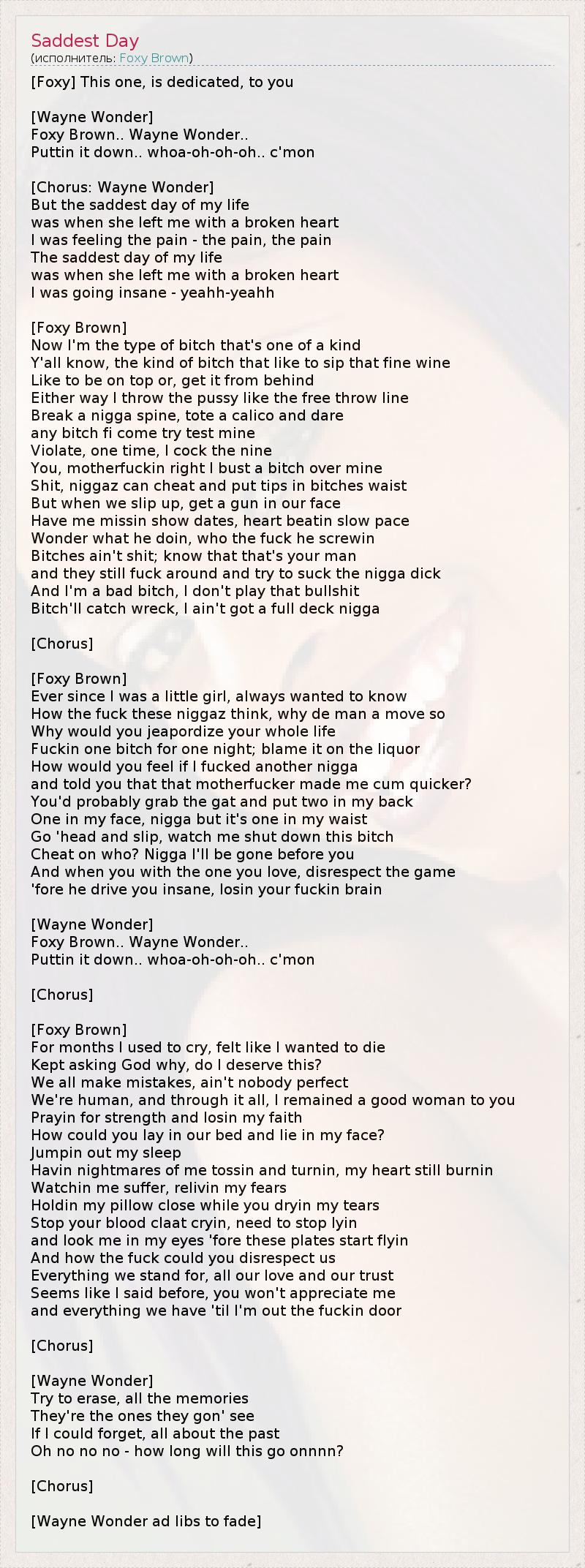А как ты думаешь, о чем песня "Saddest Day" ?