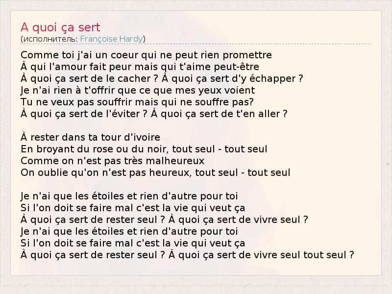 А как ты думаешь, о чем песня "A quoi ça sert" ?