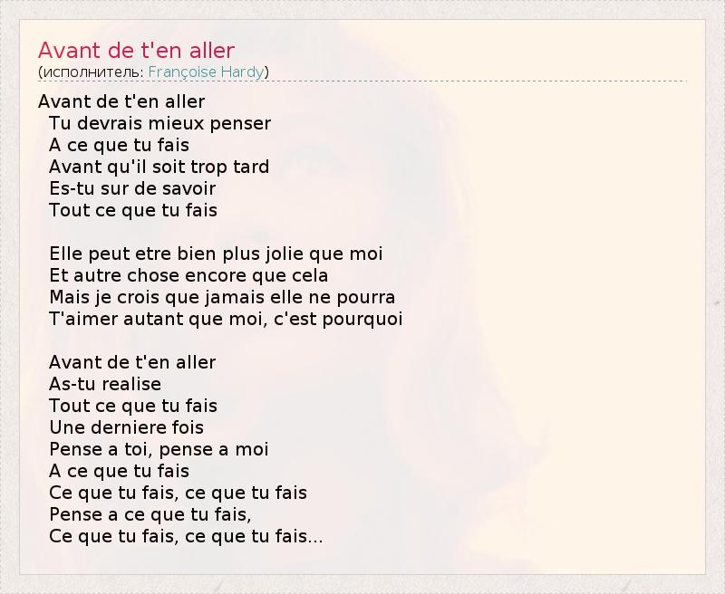 А как ты думаешь, о чем песня "Avant de t'en aller" ?