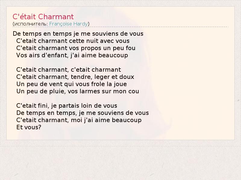 А как ты думаешь, о чем песня "C'était Charmant" ?