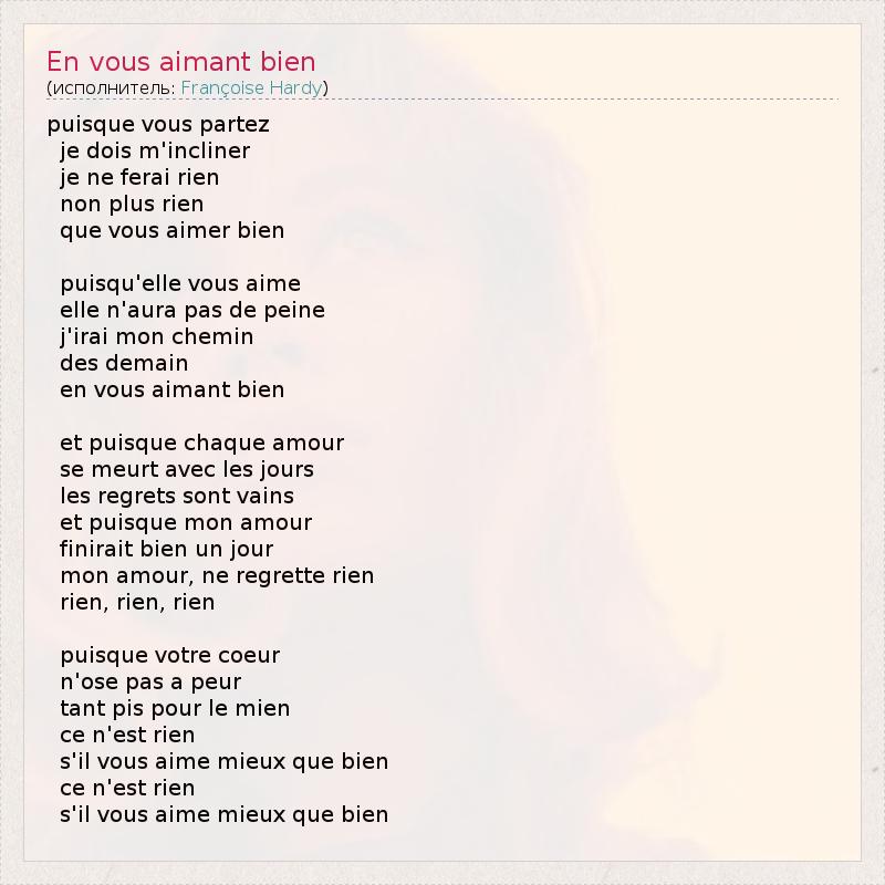 А как ты думаешь, о чем песня "En vous aimant bien" ?