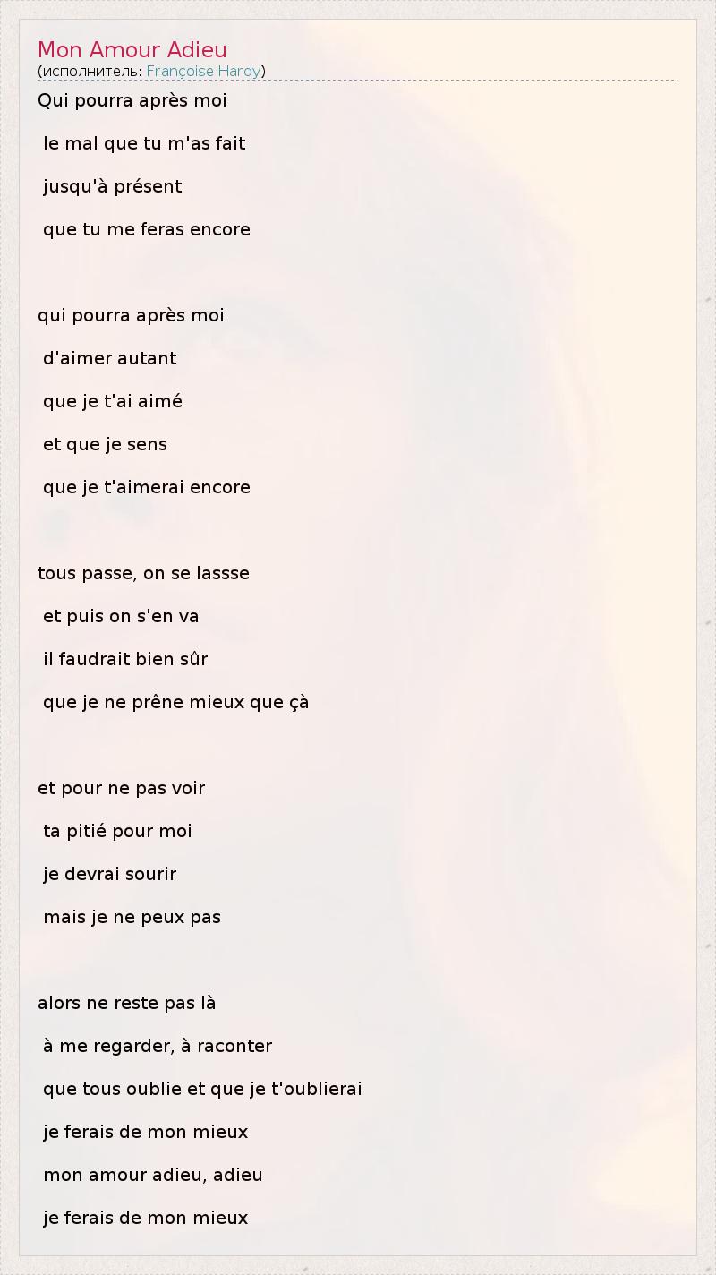А как ты думаешь, о чем песня "Mon Amour Adieu" ?