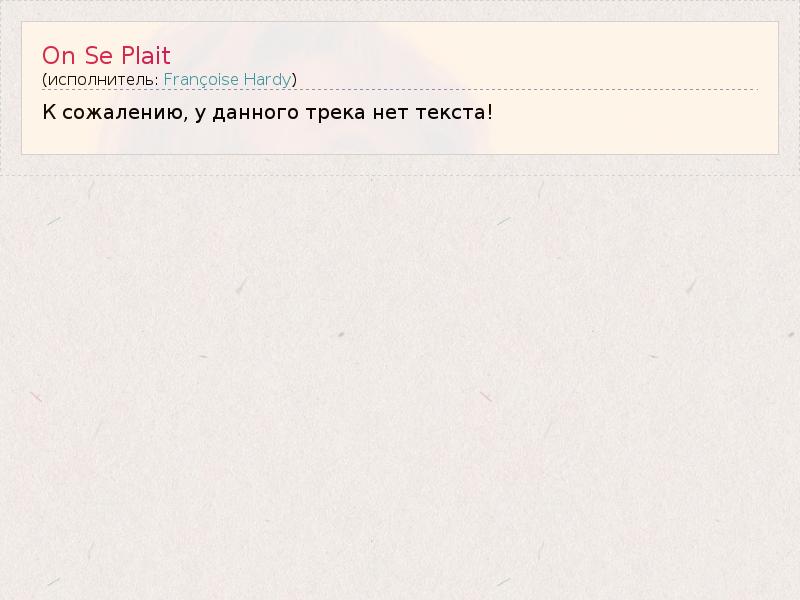 Это интересно:Уроженка Парижа, Франсуаза Арди (17.01.1944) воспитывалась в интернате для девочек La Bruyere, где и начала писать свои первые песни.В конце 50-х девушка поступила в Petit Conservatoire de Mireille, в то же время занимаясь в Сорбонне политологией (позже перевелась на филологический факультет) и время от времени посещая прослушивания в различных звукозаписывающих студиях. Удача улыбнулась Франсуазе в 1961 году,... продолжение