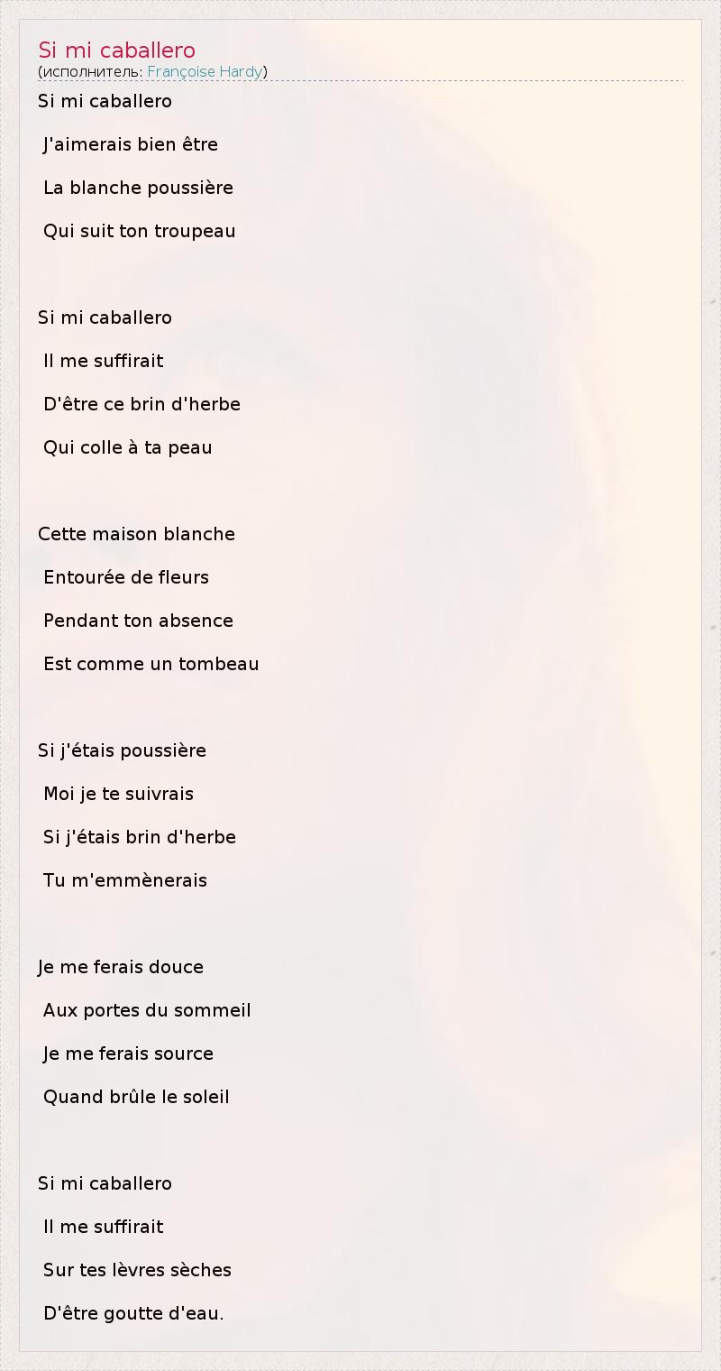 А как ты думаешь, о чем песня "Si mi caballero" ?