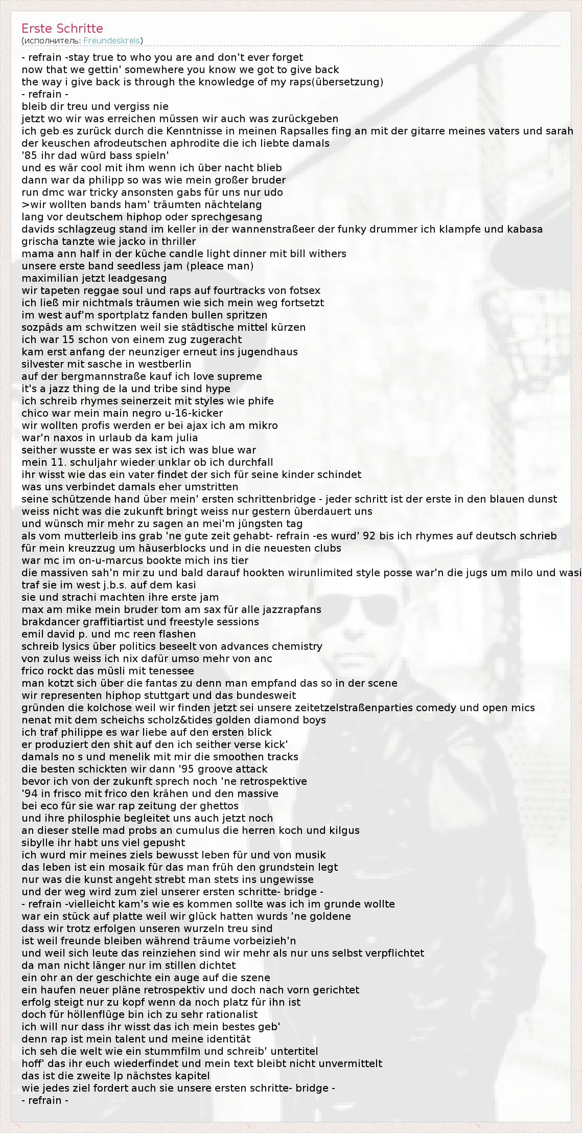 als vom mutterleib ins grab 'ne gute zeit gehabt- refrain -es wurd' 92 bis ich rhymes auf deutsch schrieb