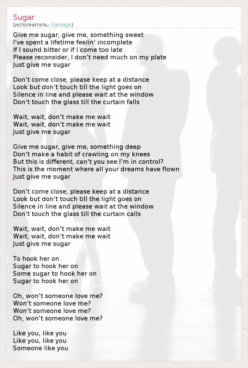 Give me sugar, give me, something sweet