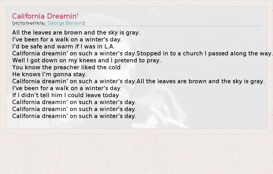 А как ты думаешь, о чем песня "California Dreamin'" ?