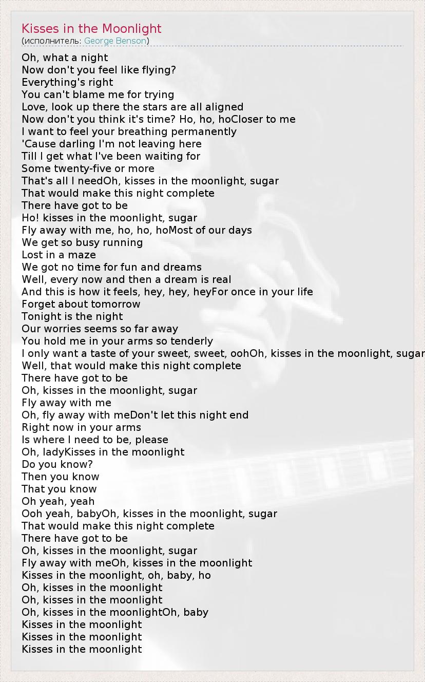 А как ты думаешь, о чем песня "Kisses in the Moonlight" ?