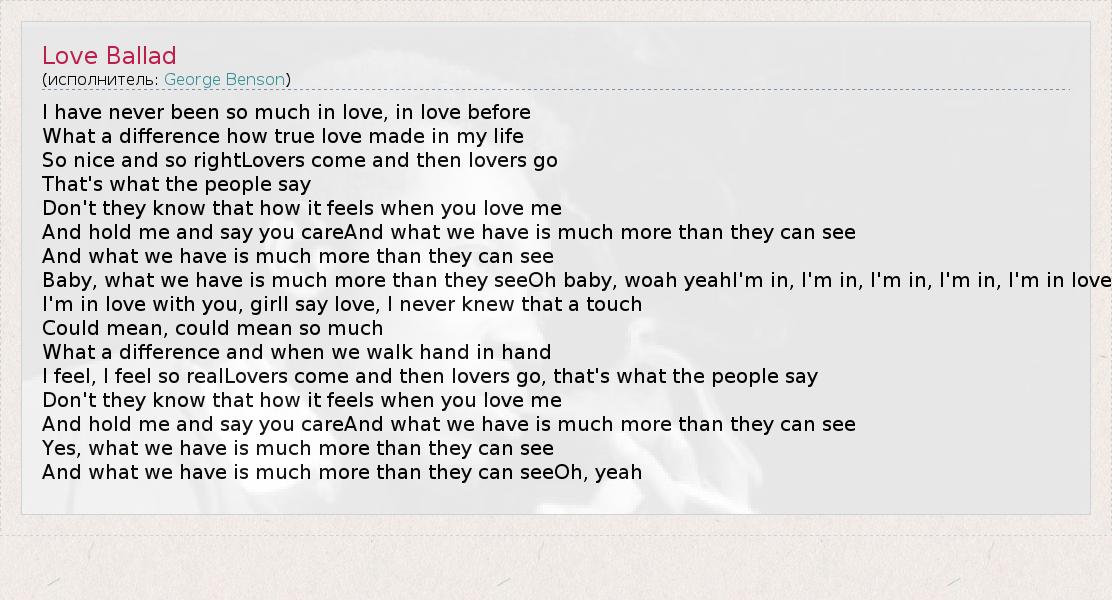 А как ты думаешь, о чем песня "Love Ballad" ?