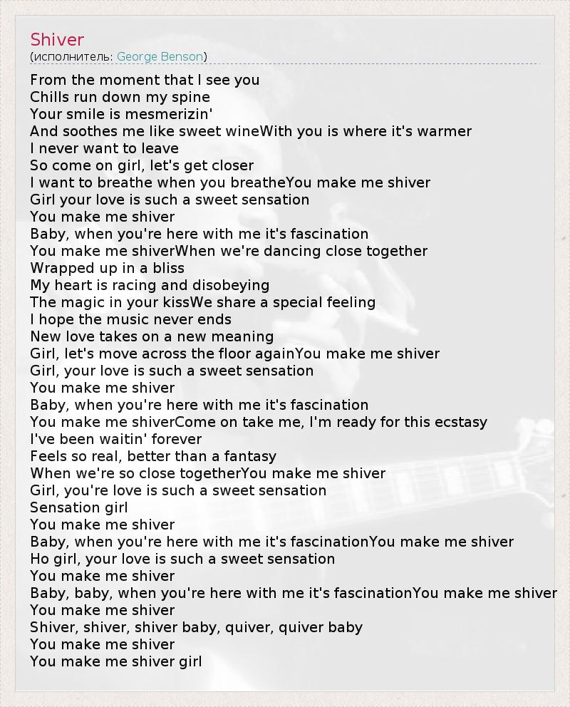 Shiver, shiver, shiver baby, quiver, quiver baby