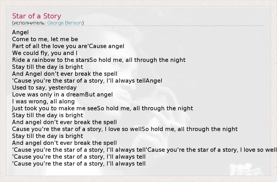 Cause you're the star of a story, I love so wellSo hold me, all through the night