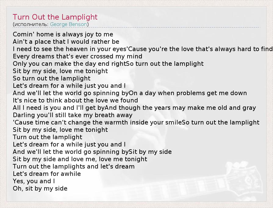 А как ты думаешь, о чем песня "Turn Out the Lamplight" ?