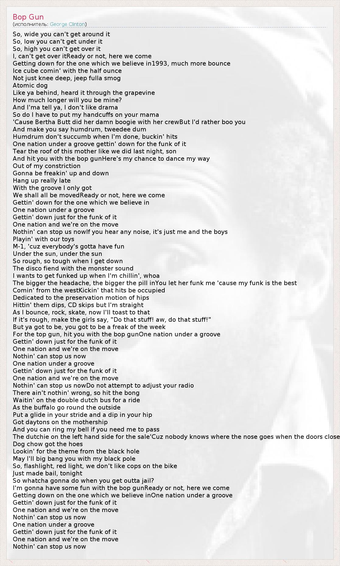 А как ты думаешь, о чем песня "Bop Gun" ?