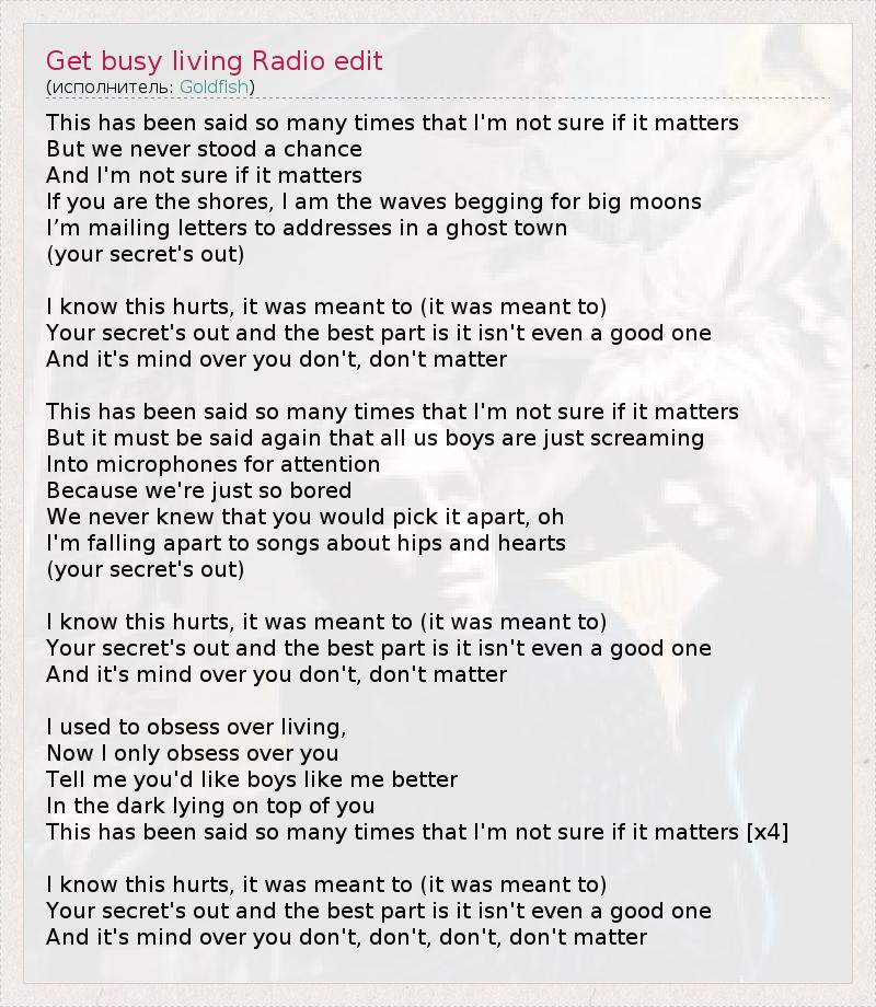 А как ты думаешь, о чем песня "Get busy living Radio edit" ?