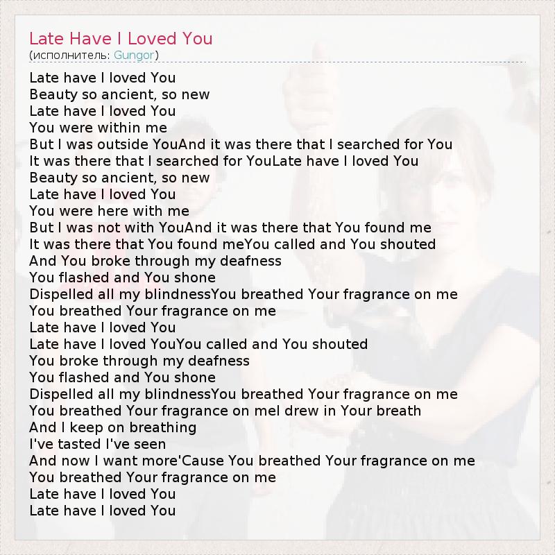А как ты думаешь, о чем песня "Late Have I Loved You" ?