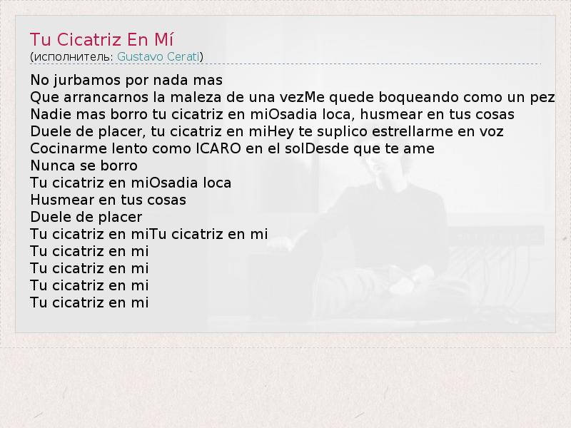 А как ты думаешь, о чем песня "Tu Cicatriz En Mí" ?