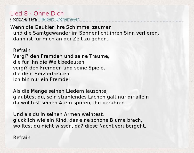 А как ты думаешь, о чем песня "Lied 8 - Ohne Dich" ?