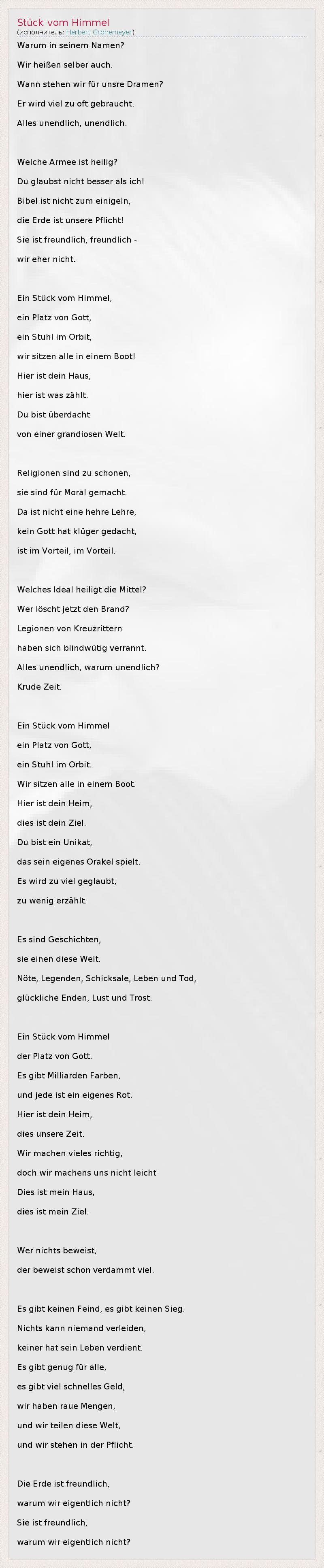 А как ты думаешь, о чем песня "Stück vom Himmel" ?