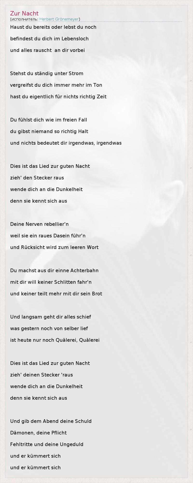 А как ты думаешь, о чем песня "Zur Nacht" ?