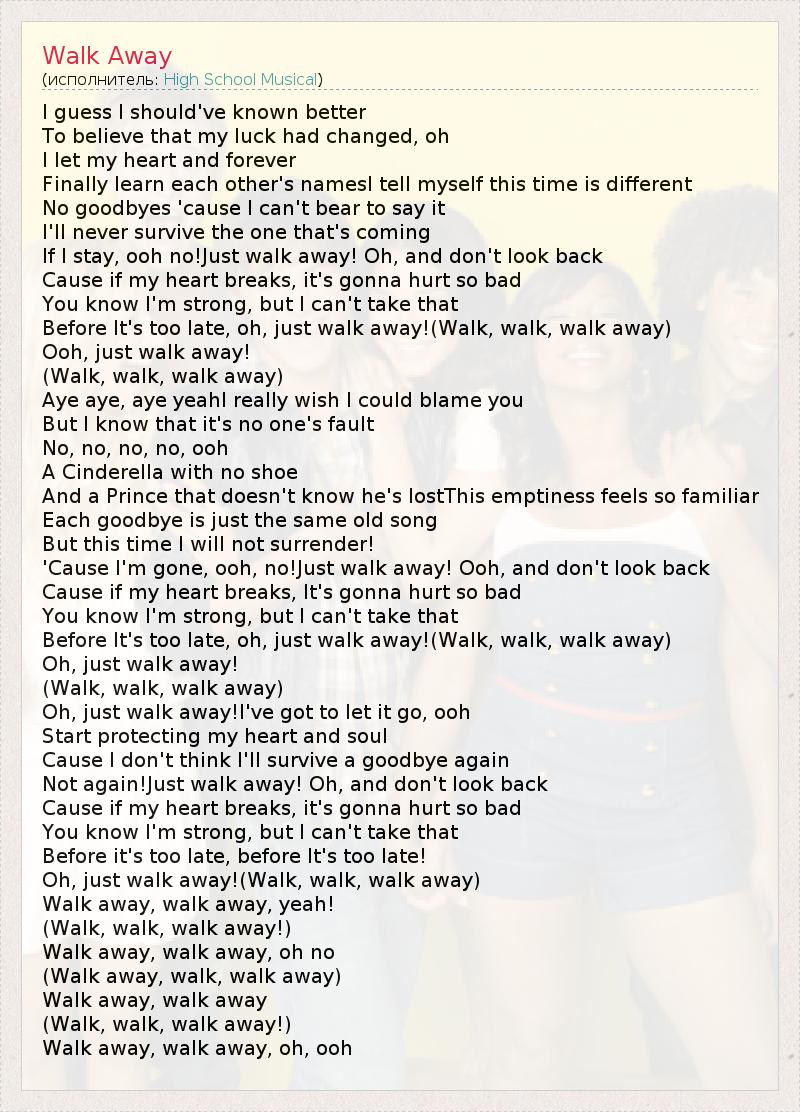 If I stay, ooh no!Just walk away! Oh, and don't look back