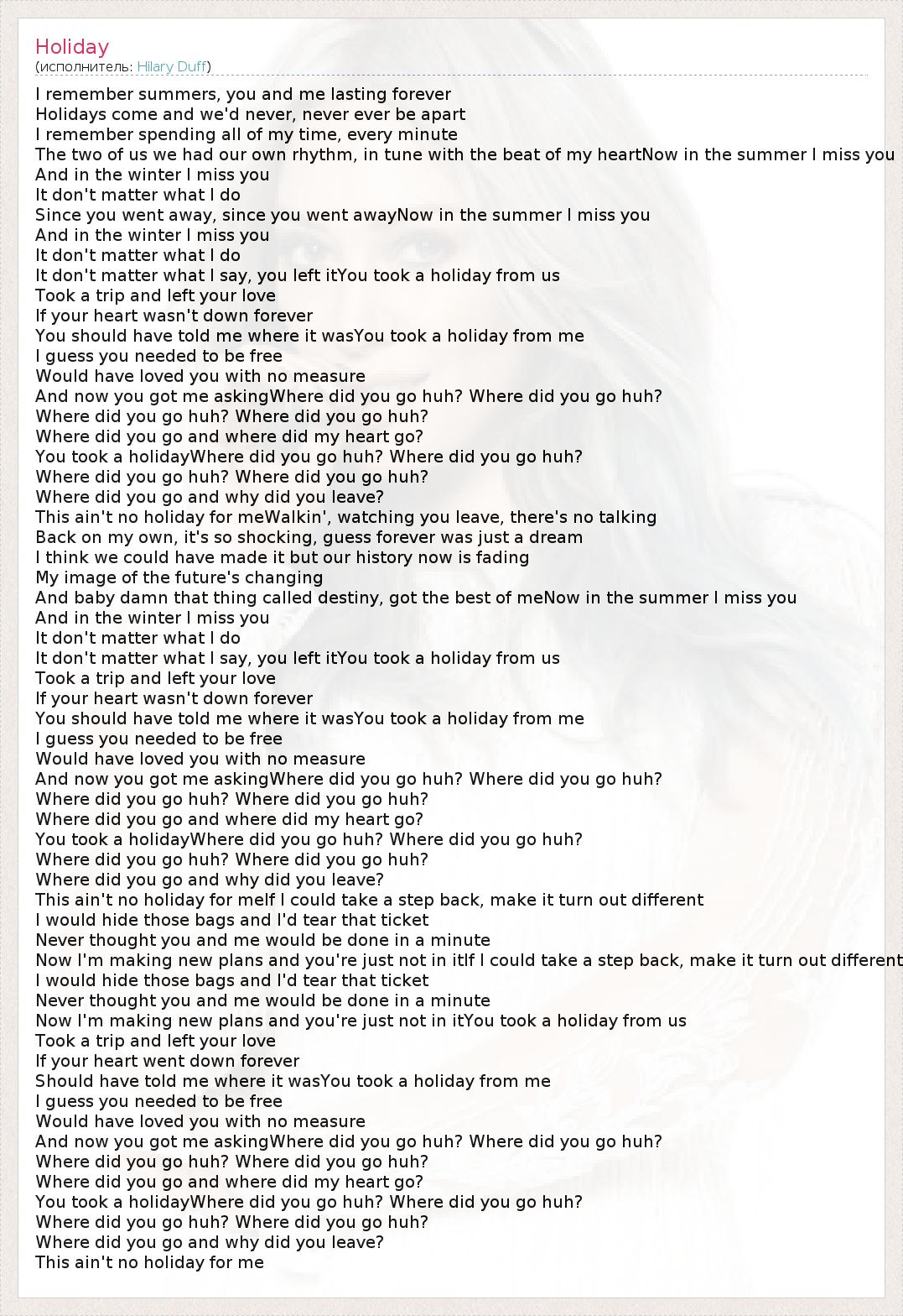 This ain't no holiday for meWalkin', watching you leave, there's no talking
