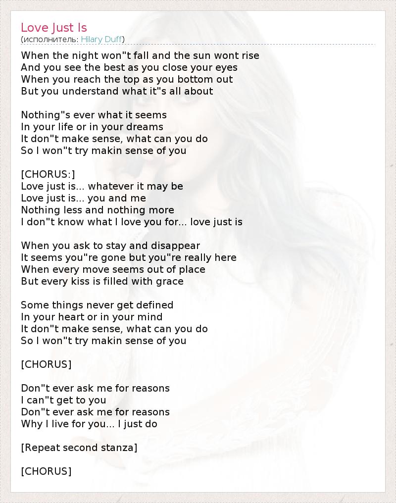 А как ты думаешь, о чем песня "Love Just Is" ?