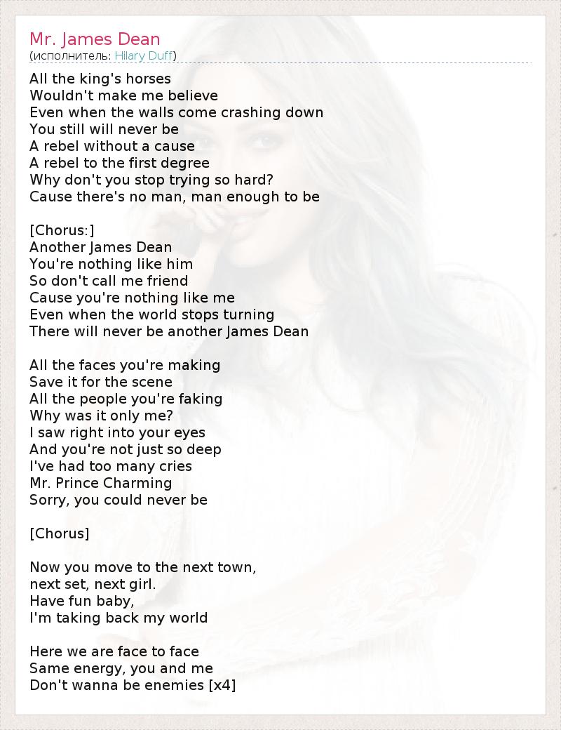 А как ты думаешь, о чем песня "Mr. James Dean" ?